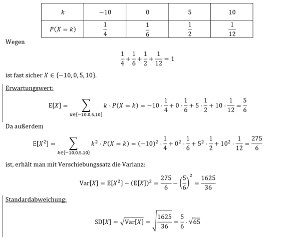 Erwartungswert Und Standardabweichung Fur Die Zufallsgrosse X Schule Mathe Hausaufgaben