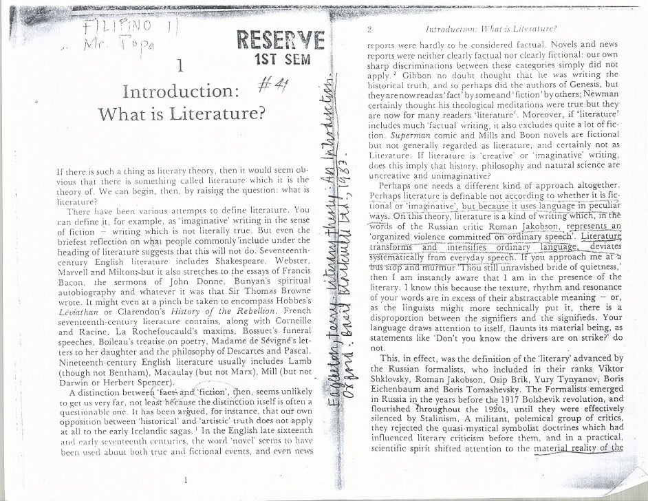 What Is Literature Terry Eagleton What Is Literature A Paraphrase Summary And Adaptation Of The Opening Chapter Of Terry Eagleton S Introduction To Course Hero