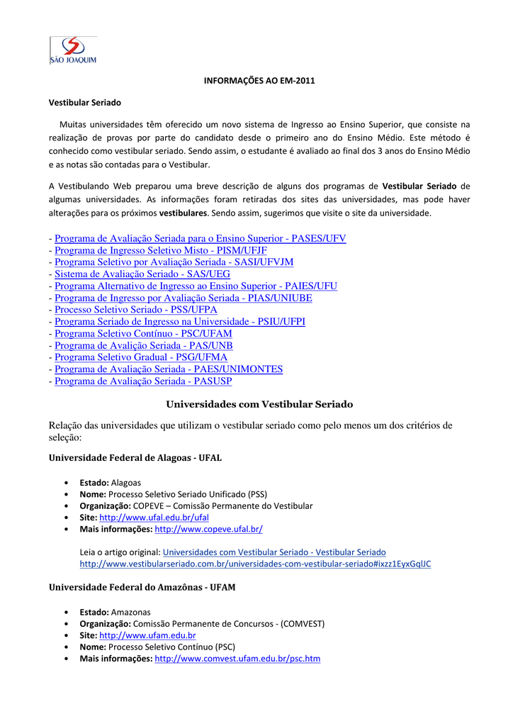 Programa De Avaliacao Seriada Para O Ensino Superior