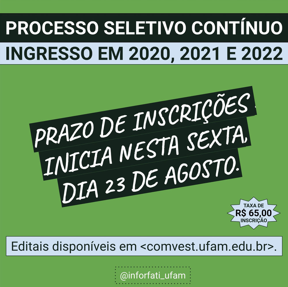 Http://comvest.ufam.edu.br. Acesse aqui lista de serviços atendidos remotamente durante a Pandemia Covid 19. Ufam autoriza em caráter excepcional realização de estágio presencial. Mapeando potenciais para inovação farmacêutica estão entre as obras a serem lançadas na.