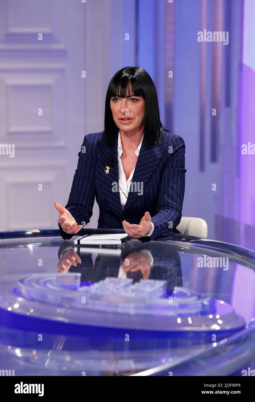 Roma Italia 07th Apr 2022 The Headmaster Of The Eugenio Montale Institute Sabrina Quaresima Guest Of The Television Broadcast Porta A Porta Rome Italy April 7th 2022 Photo By Massimo Di Vita Mondadori
